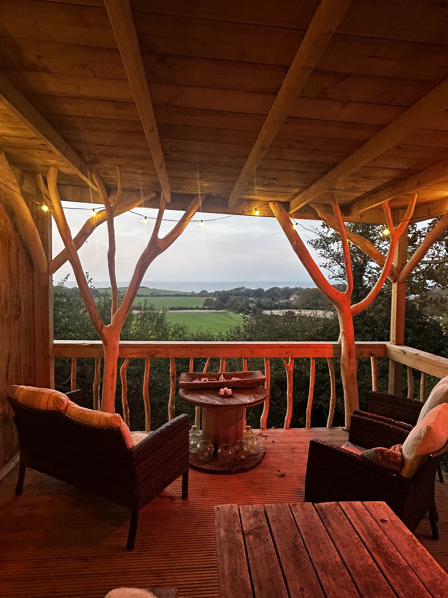 For something extra special, choose from three award-winning shepherd huts. Each hut features a double bed, an en-suite shower room, a log burner, and its own private wood-fired hot tub with stunning sea views. A curved glass skylight above the bed adds a magical touch, perfect for stargazing under the night sky.