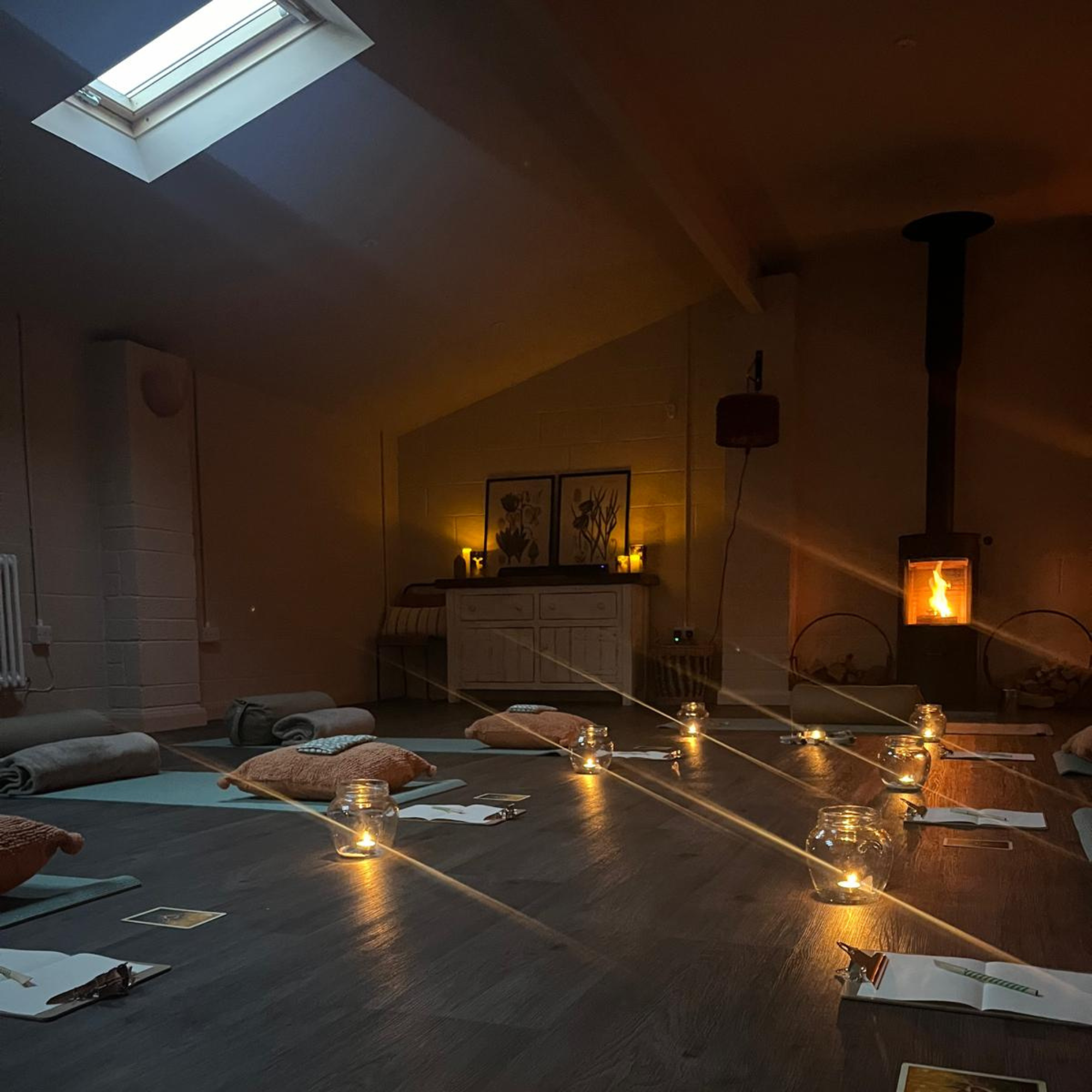 The purpose-built wellbeing studio, equipped with a Scandinavian log burner, provides a peaceful and calming space designed for relaxation and reflection.